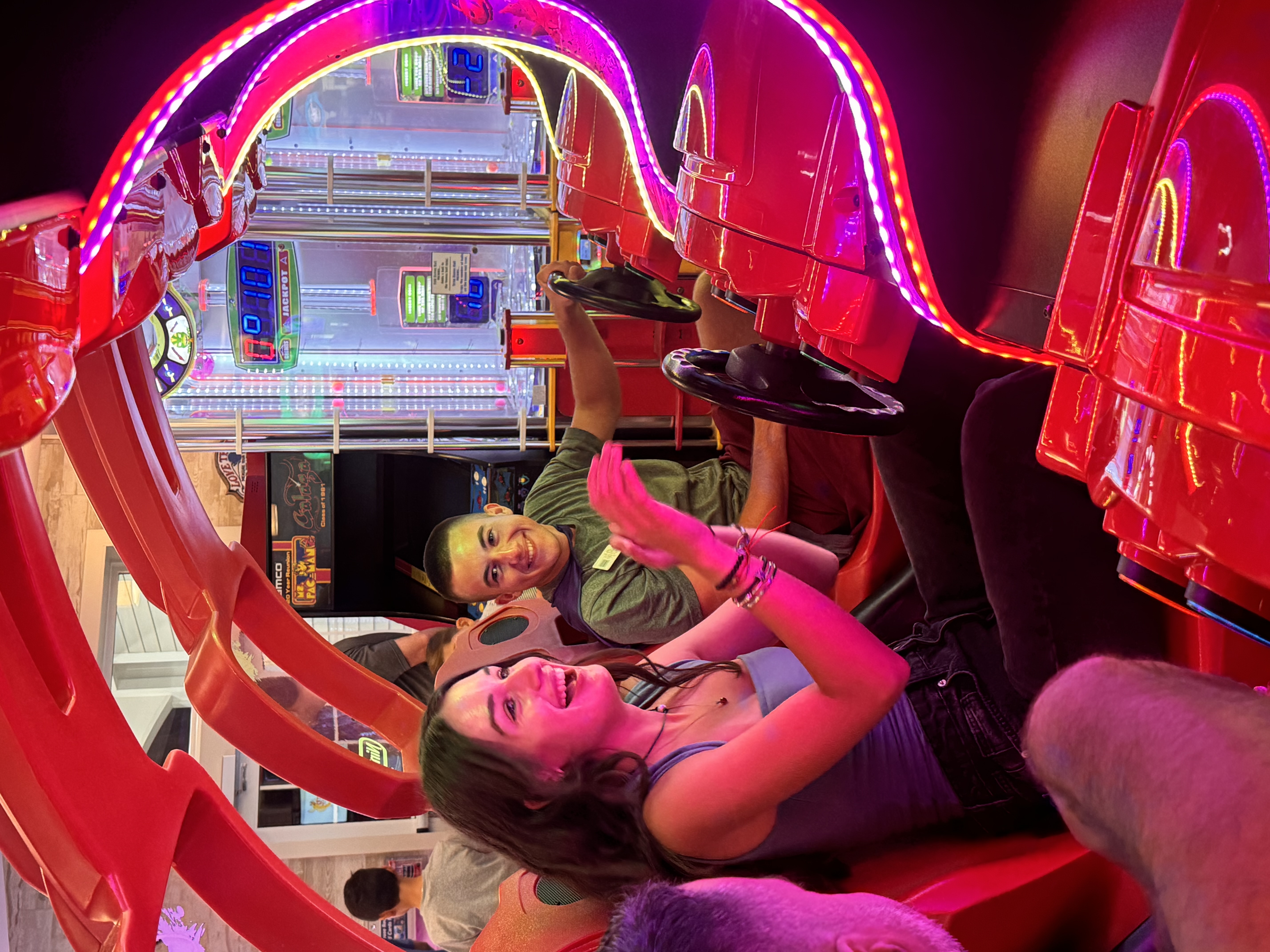 Having fun in the arcade