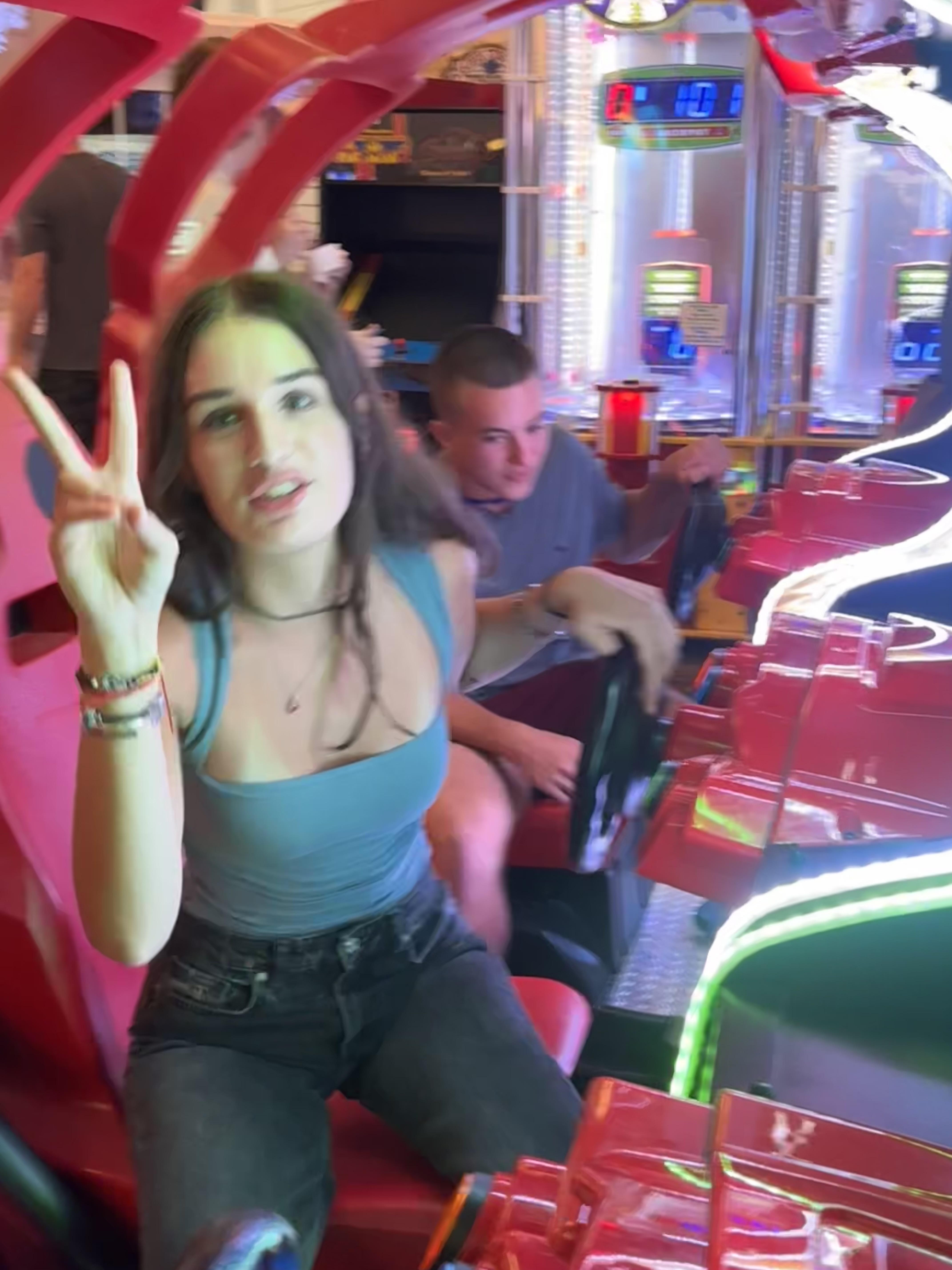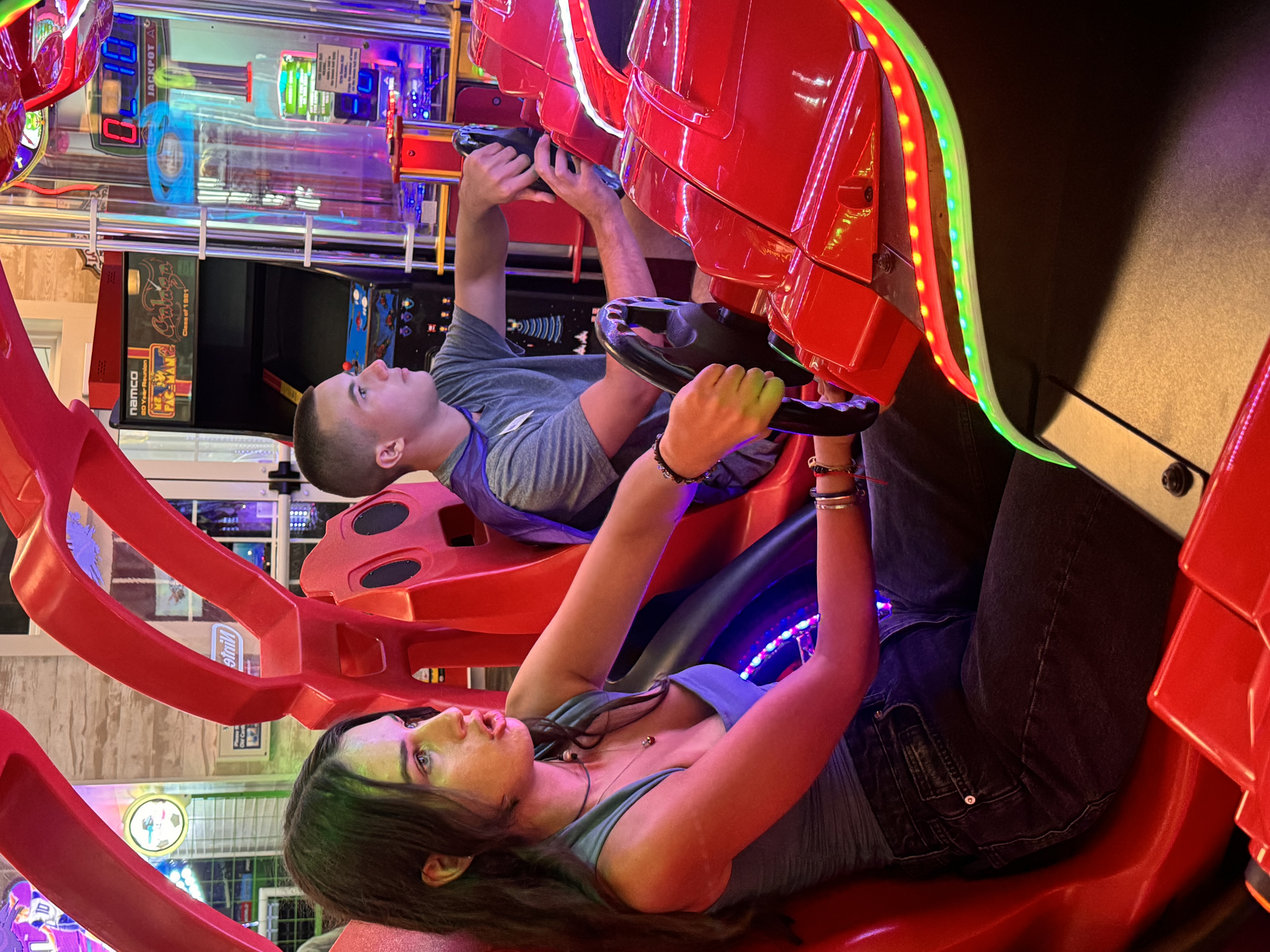 Having fun in the arcade